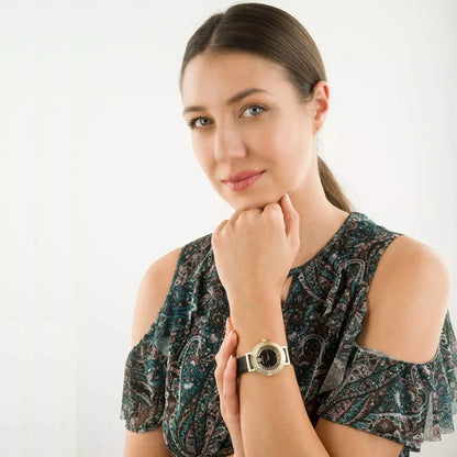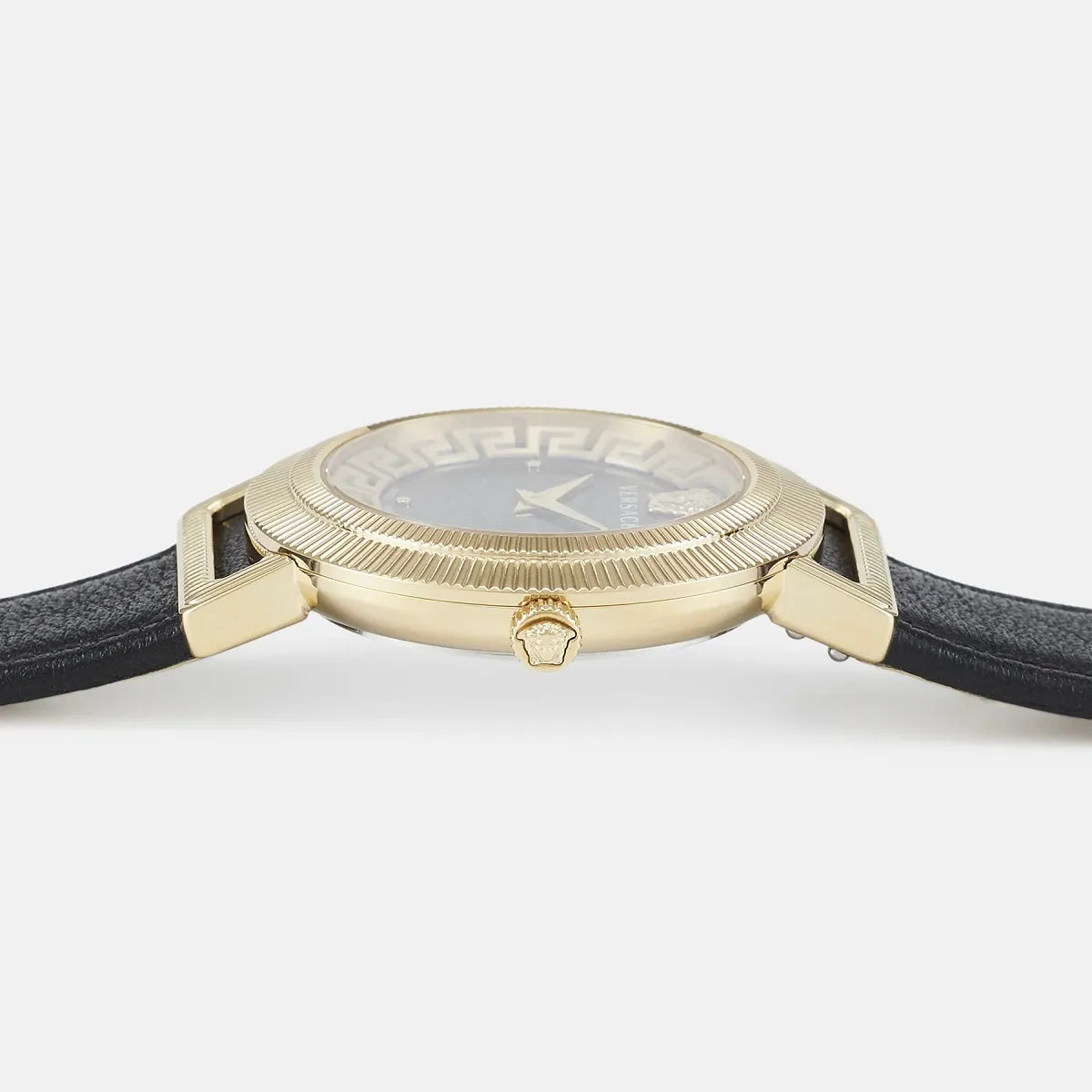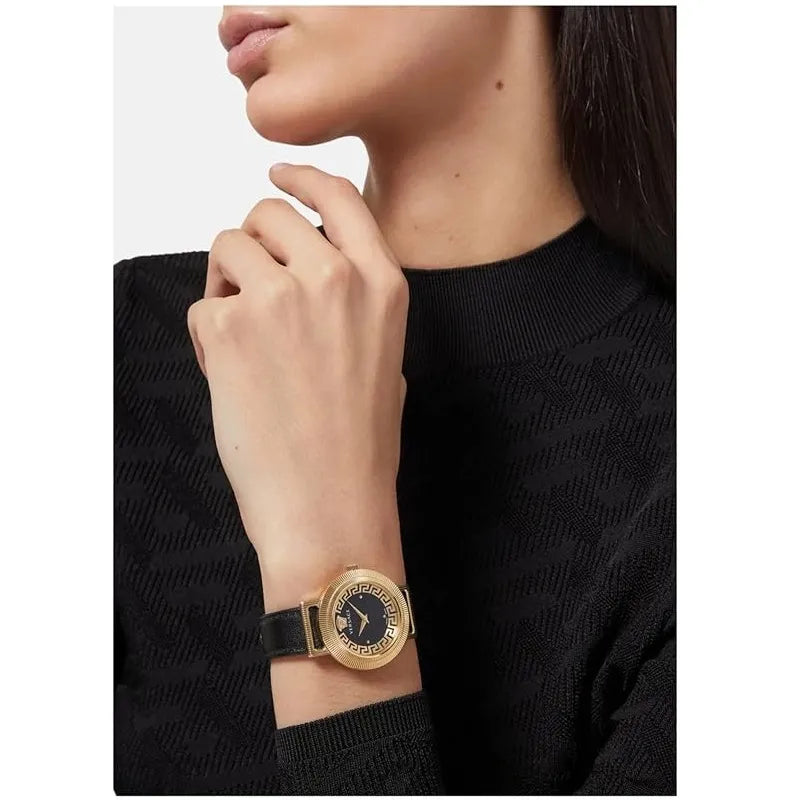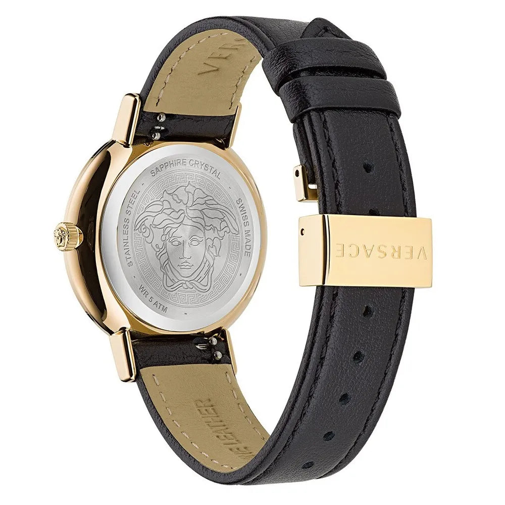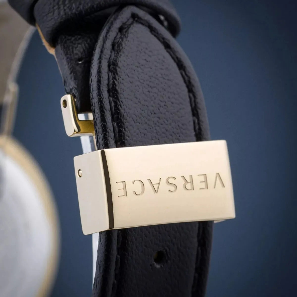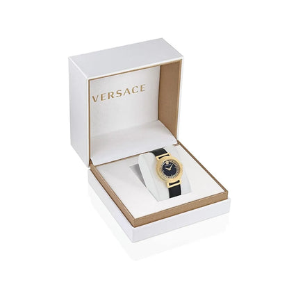 ▼- Die Damenarmbanduhr Versace VE3D00322 ist ein Meisterwerk an Eleganz und Modernität, perfekt für jeden Anlass. Mit einem Durchmesser von 36 mm ist diese Uhr ideal für alle, die ein Accessoire suchen, das Stil und Raffinesse vereint. Das Gehäuse aus vergoldetem Edelstahl und das schwarze Lederarmband machen sie zu einem vielseitigen und stilvollen Accessoire für jeden Kleiderschrank.