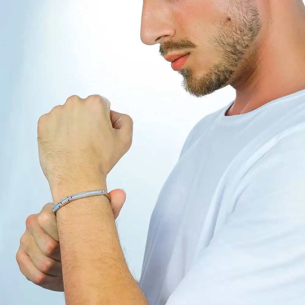 - Fabriqué en acier inoxydable de haute qualité, ce bracelet garantit durabilité et résistance.