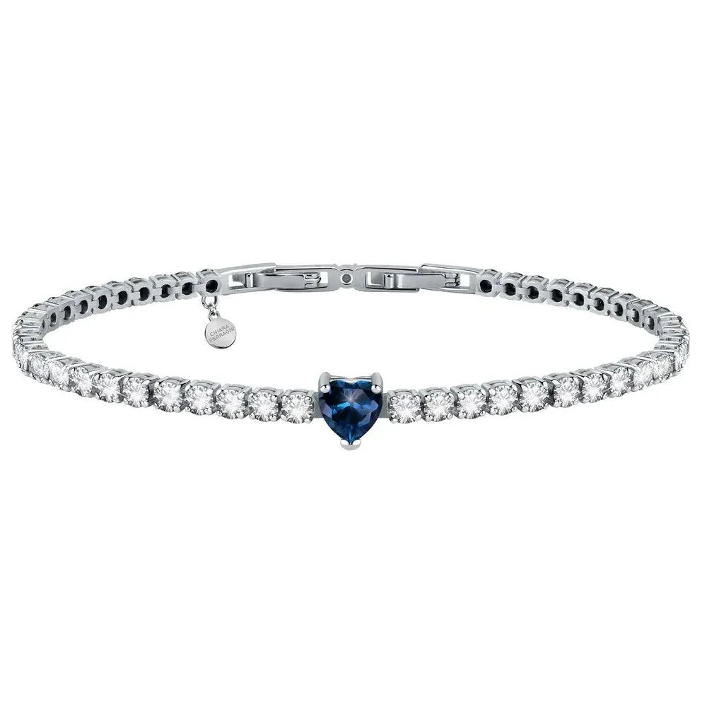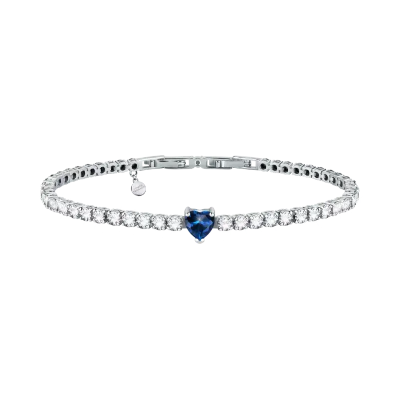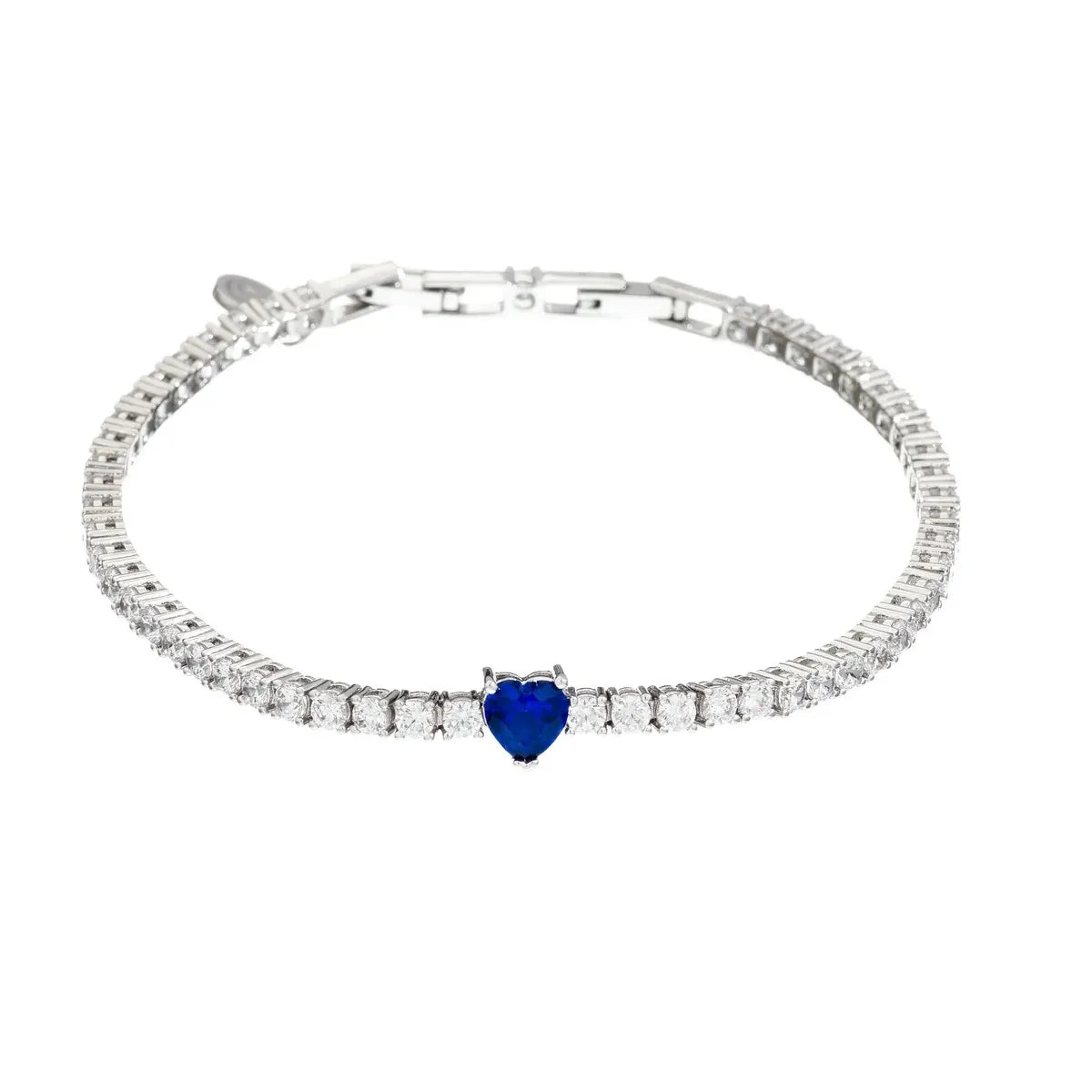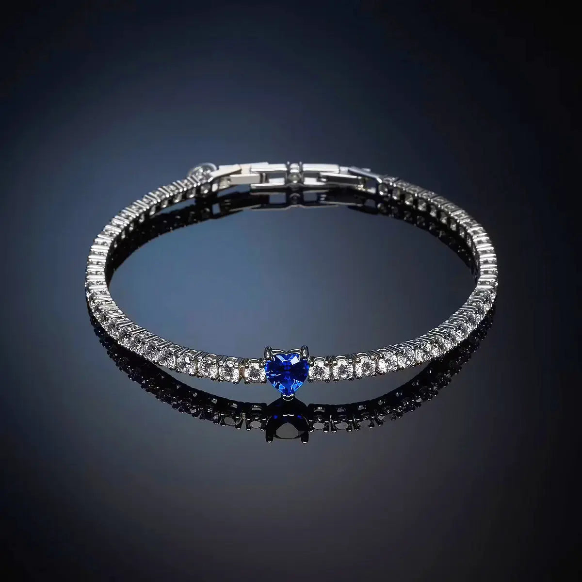 - Realizzato in acciaio 316L rodiato con zirconi bianchi e un cuore blu in zircone, questo bracciale è resistente e durevole nel tempo.
