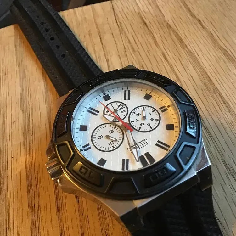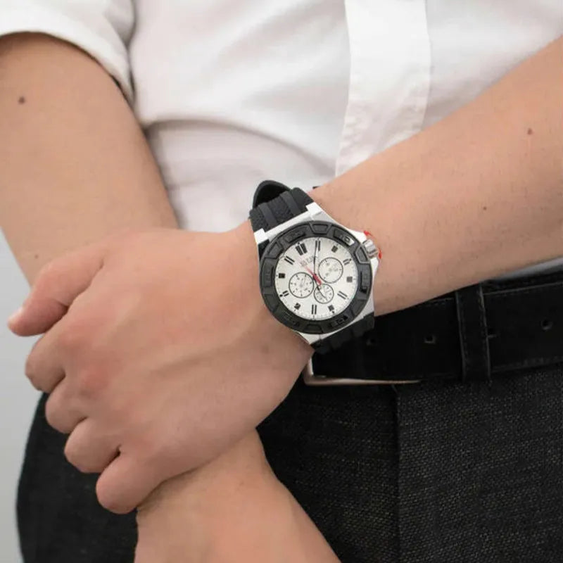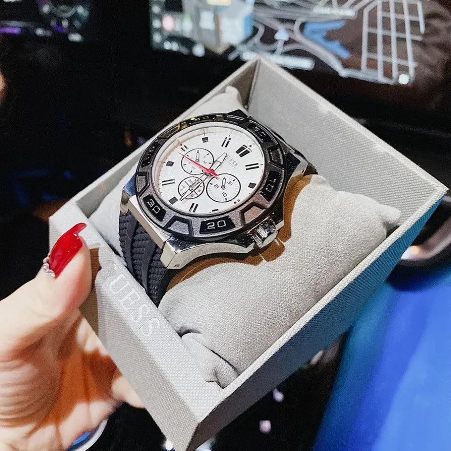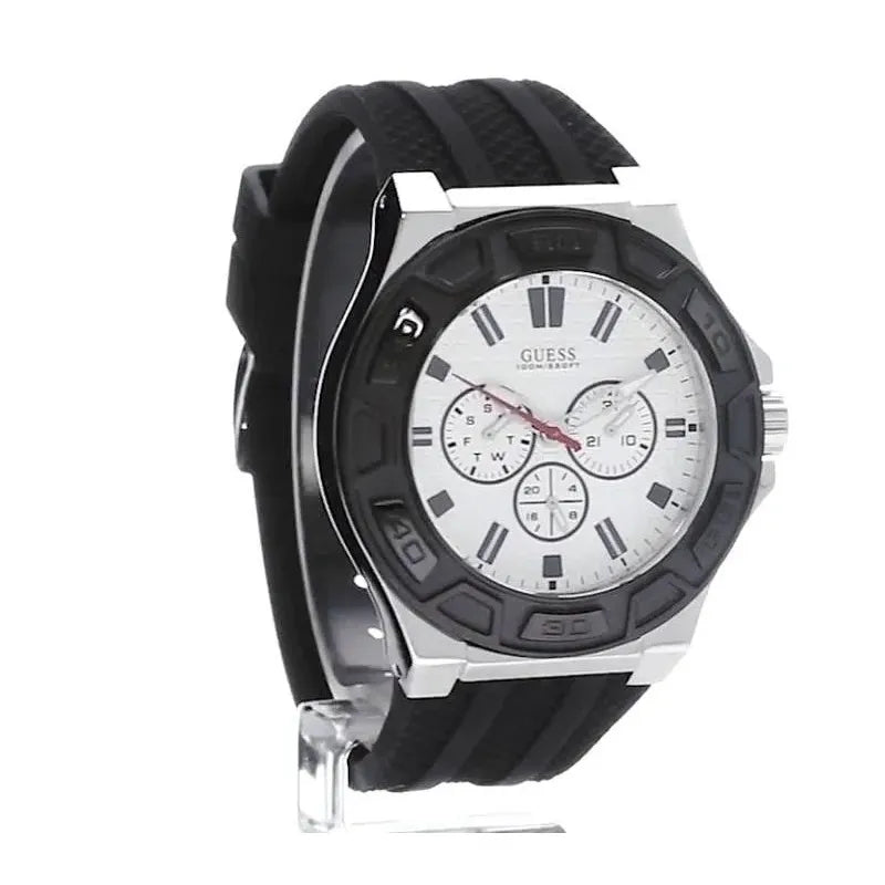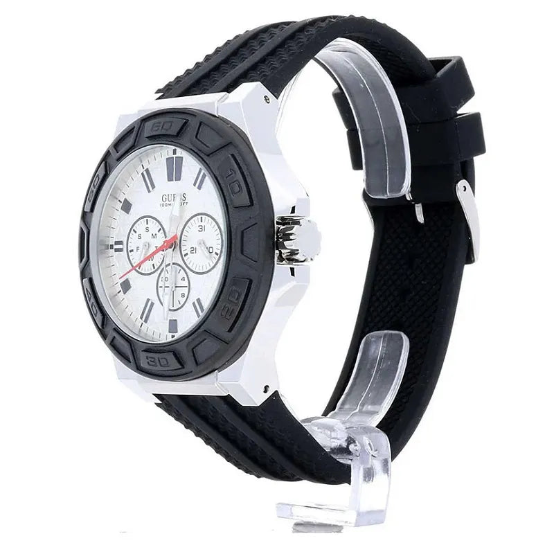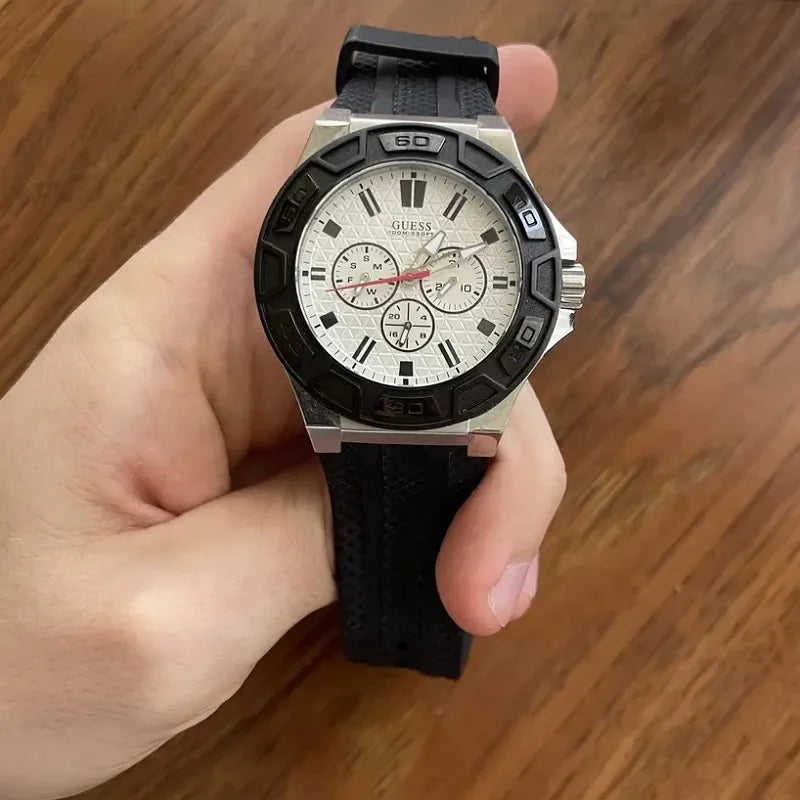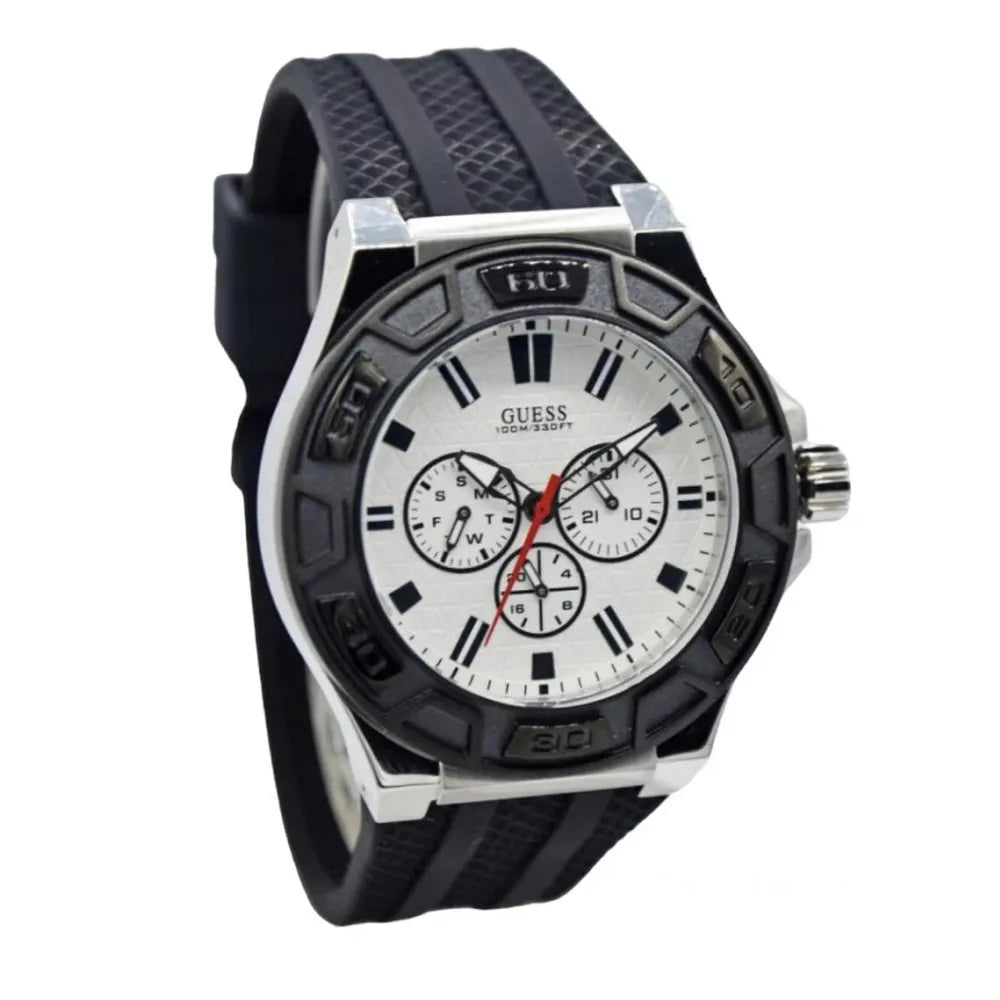 ▼- L'orologio Guess Force W0674G3 è un elegante orologio analogico al quarzo per uomo, caratterizzato da un quadrante bianco e un cinturino in caucciù nero. Ideale per chi cerca stile e precisione, questo orologio è perfetto per ogni occasione, dal lavoro al tempo libero.