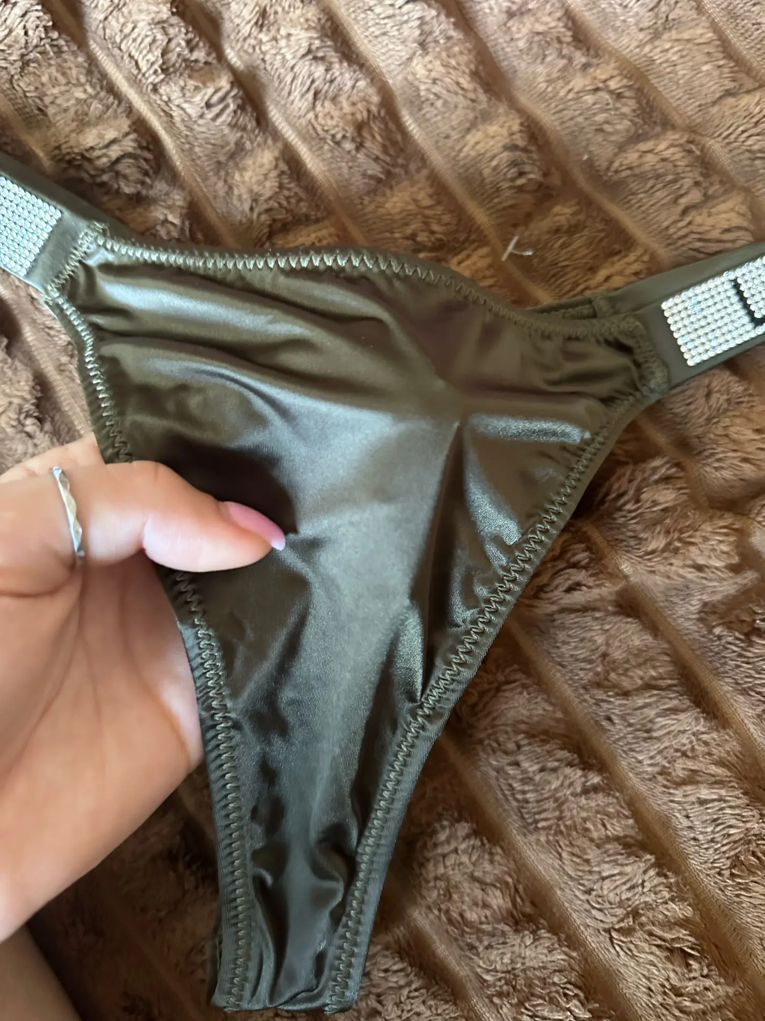 ▼- Thong Sexy a Vita Bassa con Strass. Questi slip combinano comfort e stile con un design accattivante a vita bassa, perfetto per qualsiasi occasione. Le lettere in strass aggiungono un tocco glamour, mentre il taglio G String offre un look sportivo e seducente.